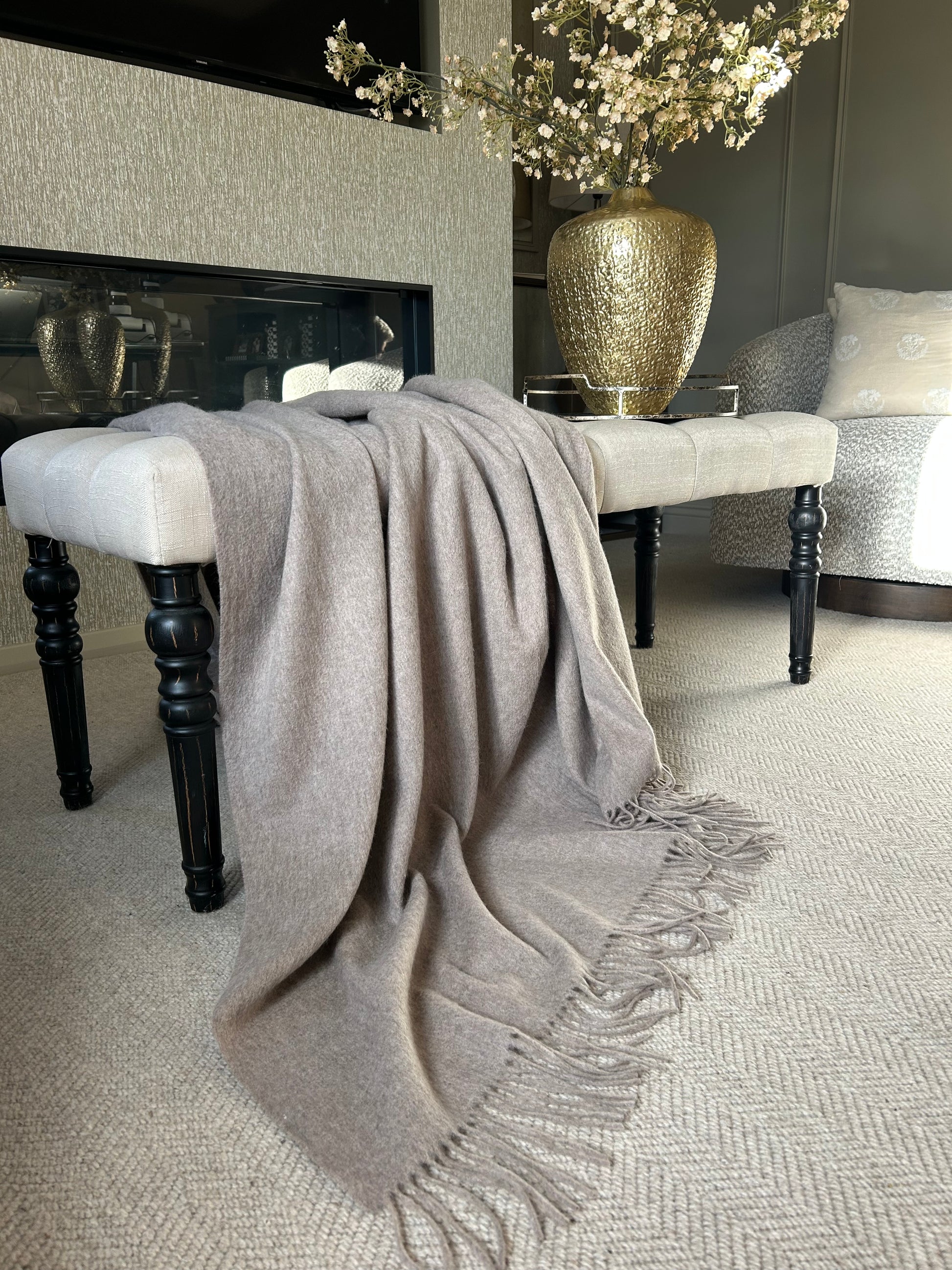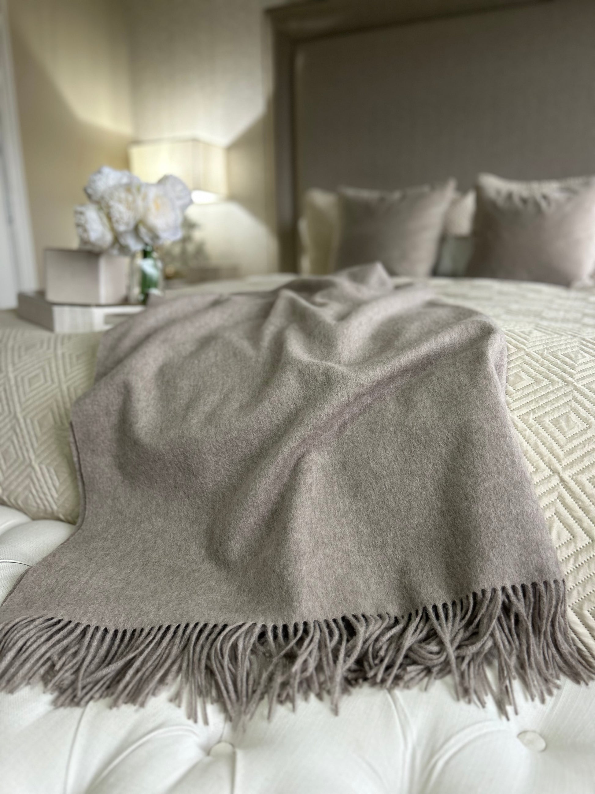 Mocha Mist is a sumptuous blend of soft mink and brown tones, creating a luxurious, classic hue that brings depth and sophistication to any interior. Its warm, versatile palette complements both contemporary and traditional spaces, adding subtle texture and effortless elegance. Crafted from 100% luxury lambswool, this throw is irresistibly soft, lightweight, and cozy — perfect for draping across a sofa, layering on a bed, or wrapping yourself in everyday comfort and style.
